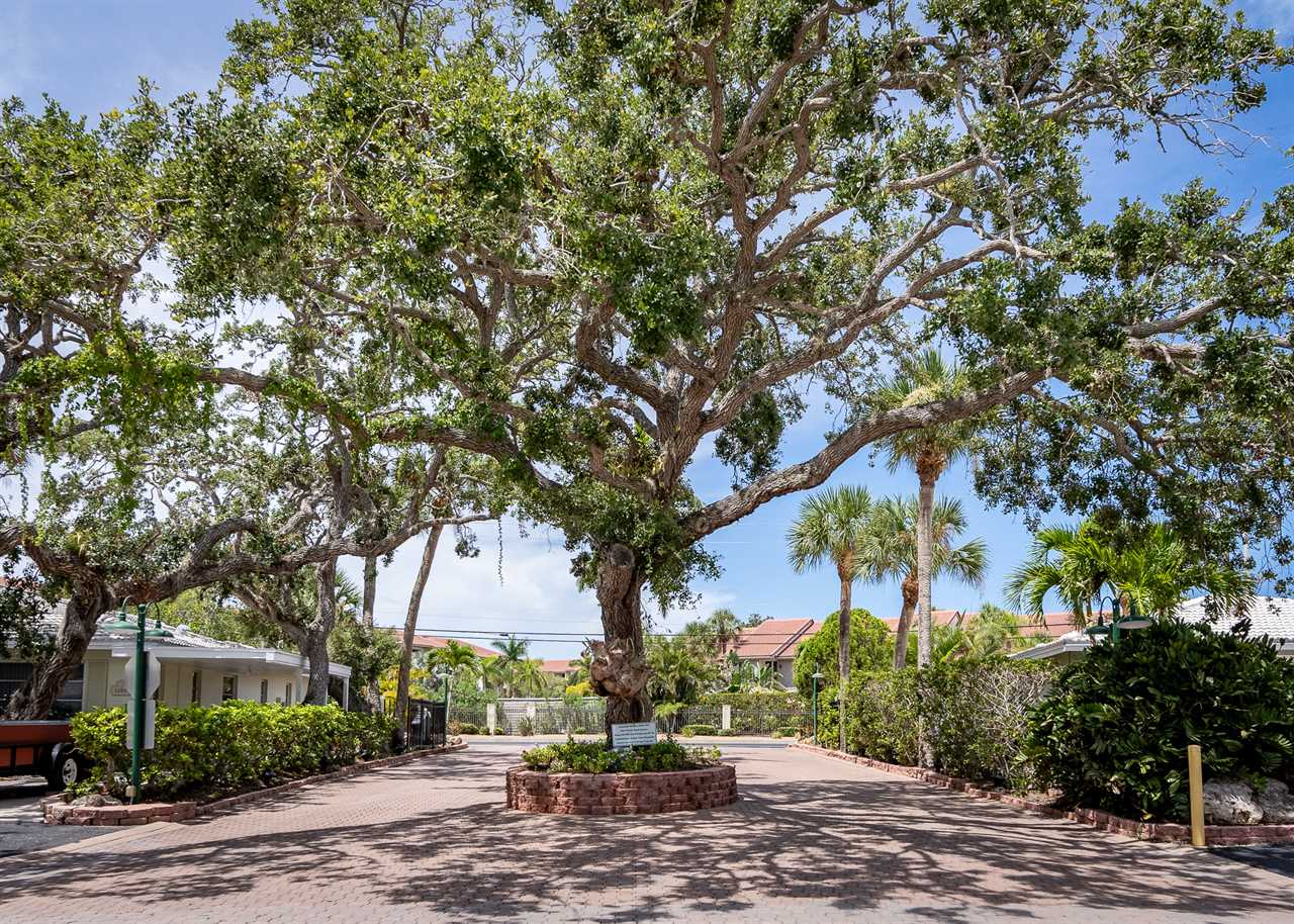 A. Polynesian Gardens is roughly 1/2 mile down the road from the closest beach access #12, located at the intersection of Midnight Pass Rd and Stickney Point Rd.