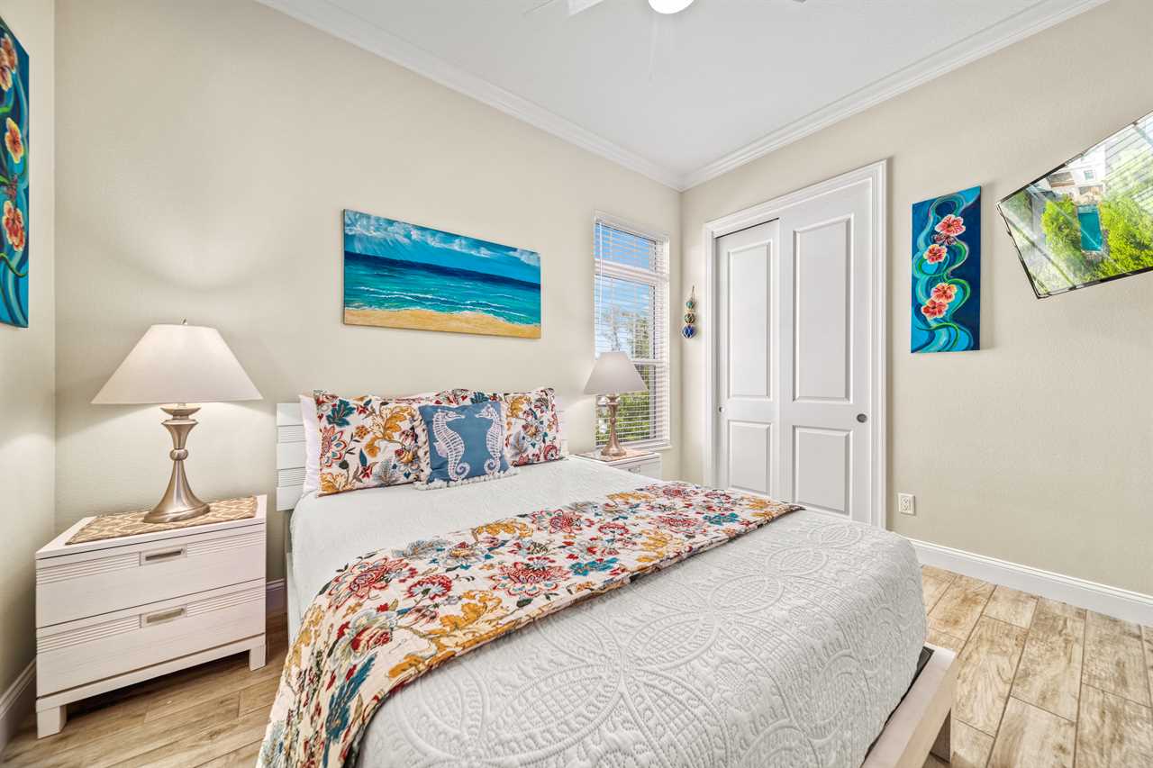 • Bedroom 2: King Bed, Shared Bath, TV
