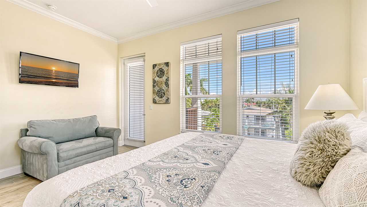 • Bedroom 2: King Bed, Ensuite Bath, Third Floor, TV + Chair Sofa Sleeper