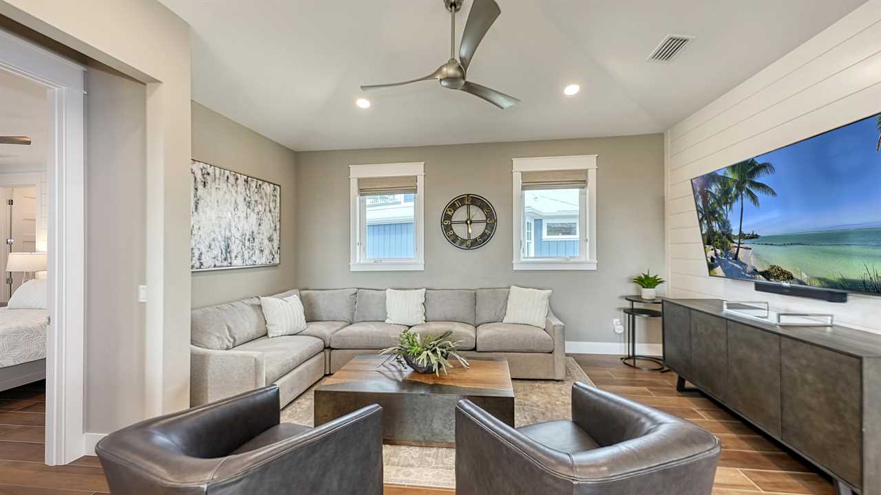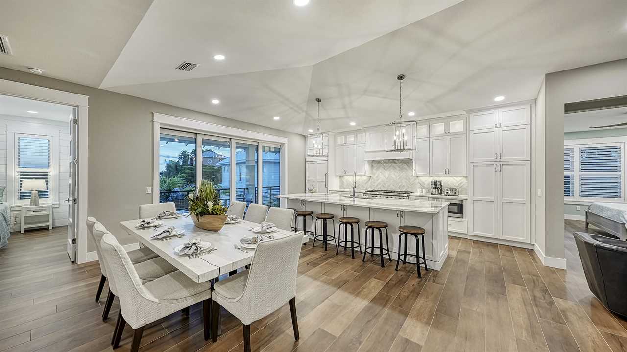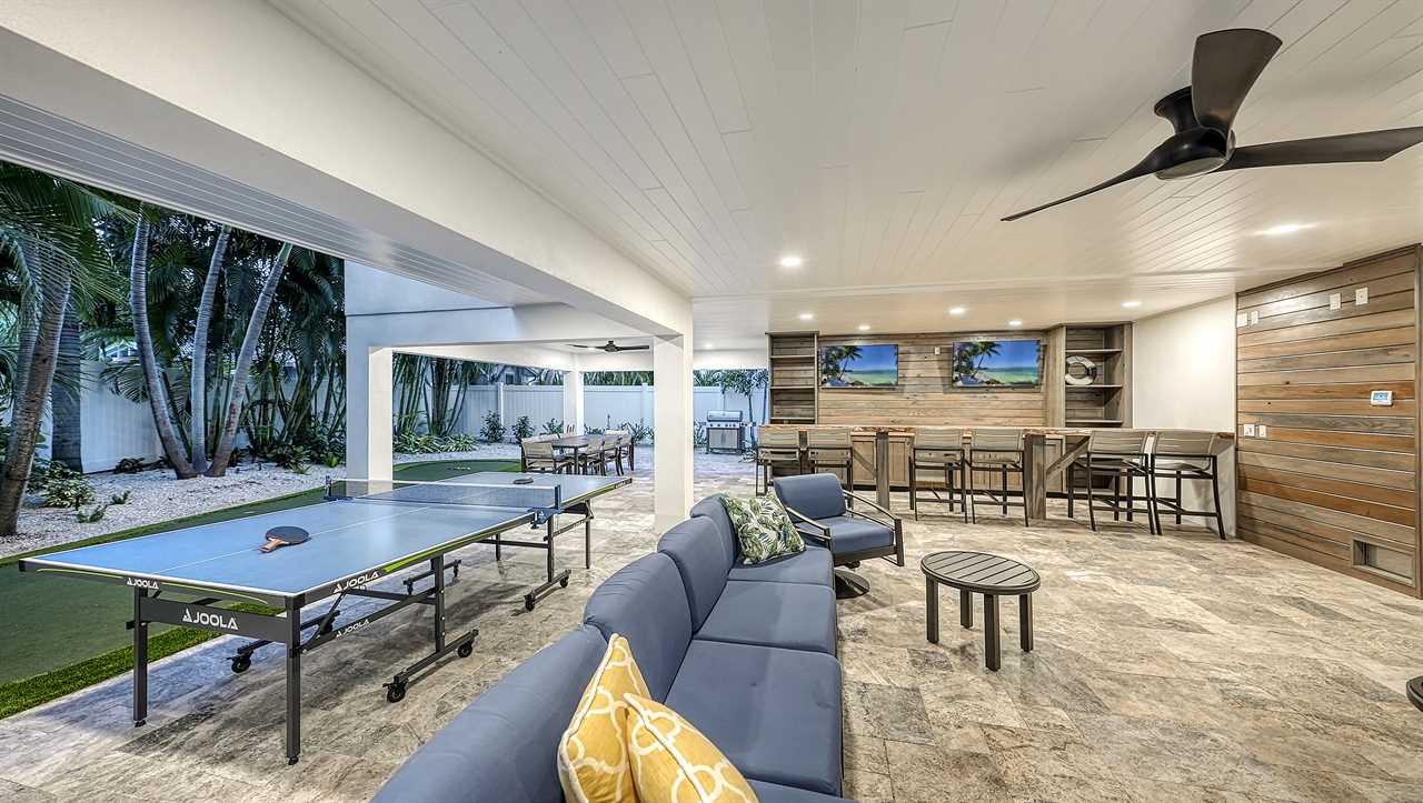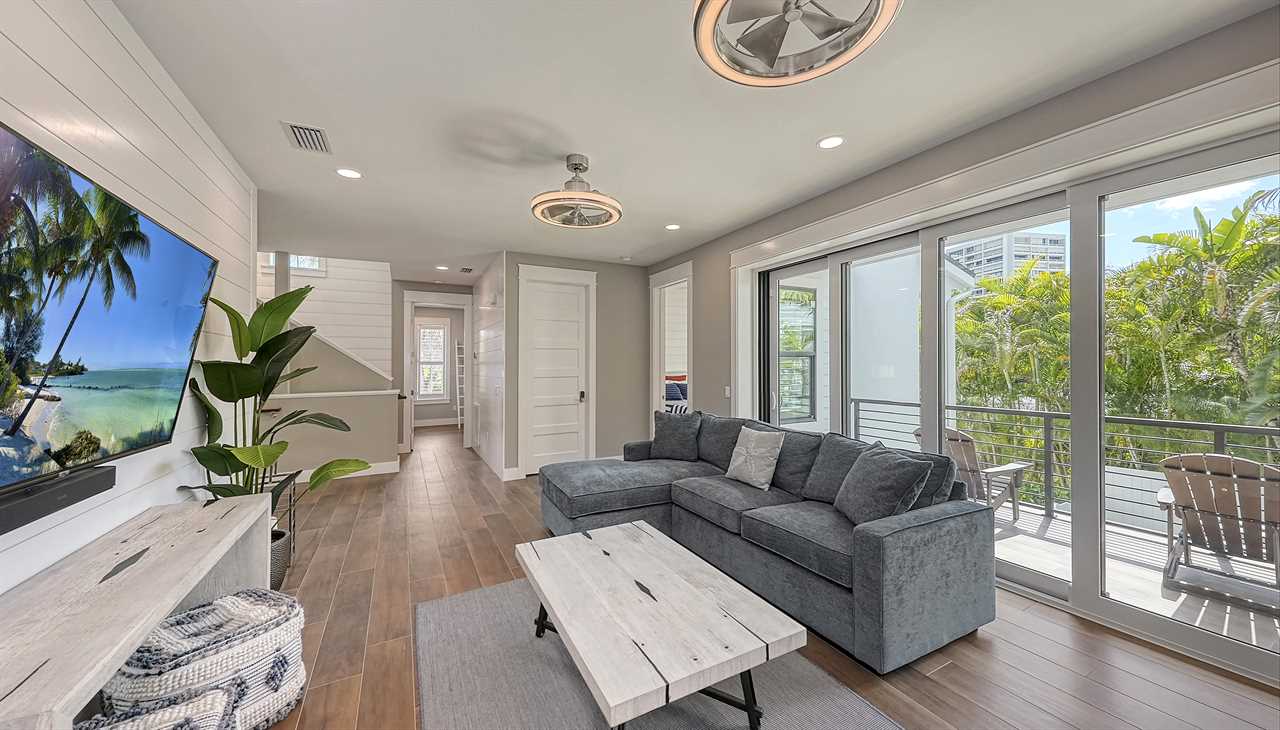 You step onto the balcony, coffee in hand, as morning light dances across the palm-lined backyard. Below, the pool sparkles and the waterfall hums softly—this is your sanctuary. Afternoons unfold on the putting green, with laughter drifting from the ping pong table. Evenings bring cocktails at the wet bar, dinner around the oversized kitchen island, and a sunset stroll—just a 2-minute walk to Siesta Key Beach. Here, every floor offers space, serenity, and coastal luxury.