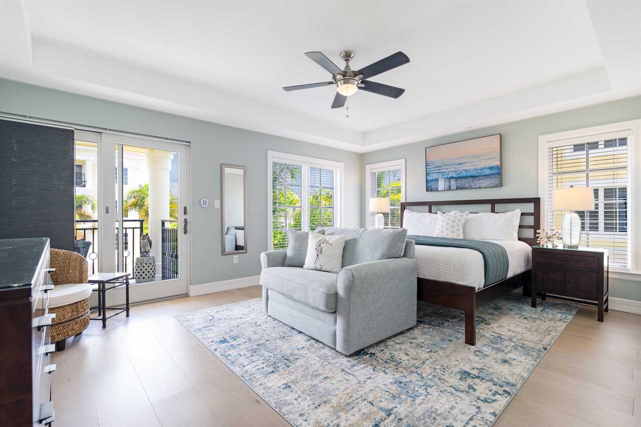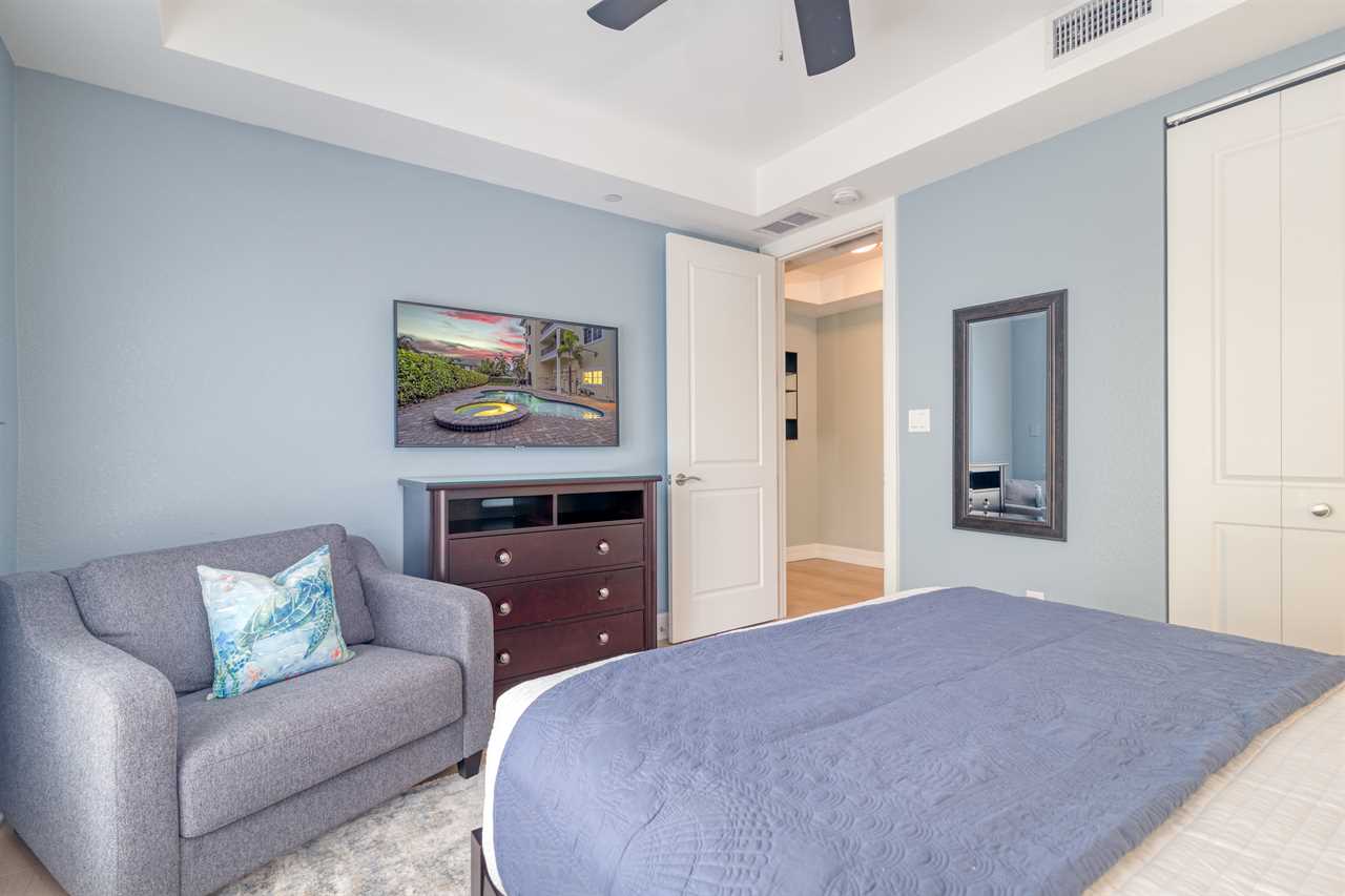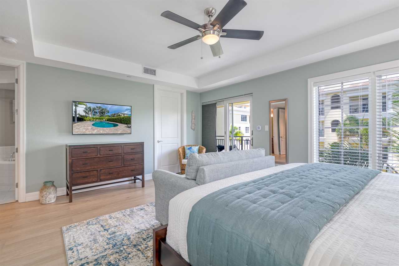 Bedroom 1: King Bed and Twin Sleeper Chair, ensuite bathroom, 2nd floor, balcony access, TV