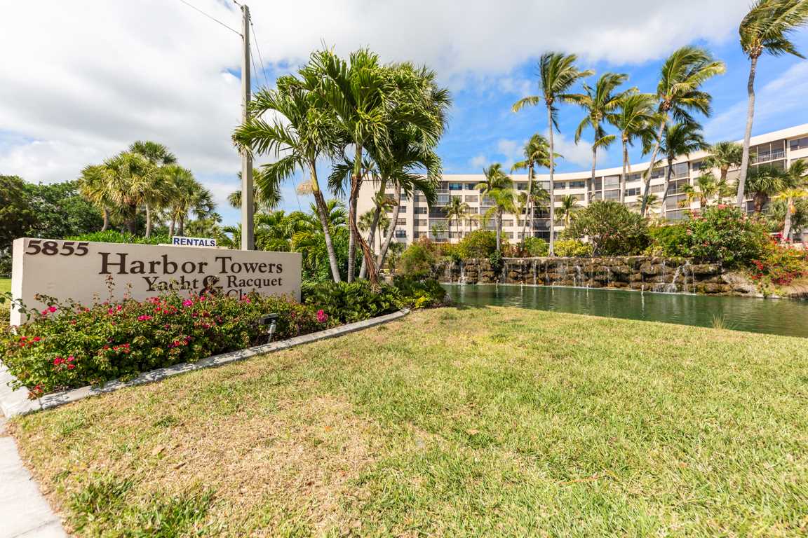 Harbor Towers has a large lobby as well as spacious common areas and corridors. It is comprised of full time residents, seasonal owner/vacationers as well as visitors who rent for shorter terms. It is directly located on the Gulf Coast Intracoastal Waterway and is a short walk or drive (0.3 miles) from public access at Siesta Beach, ranked the #1 beach in the USA in 2017.