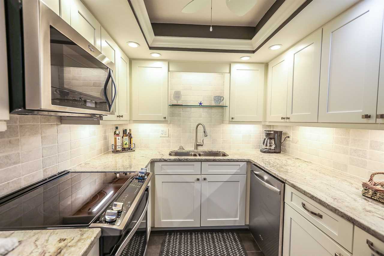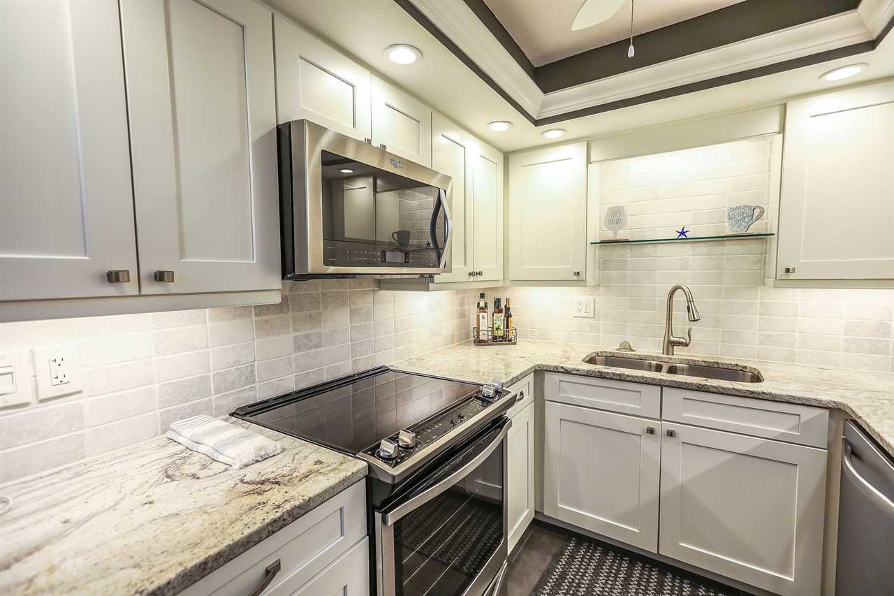 The kitchen is fully upgraded, all stainless steel appliances. Kitchen comes fully equipped with all your cooking needs! Coffee machine, toaster, microwave, oven with glass cooking top, and a tea kettle. All glassware and utensils are also provided.