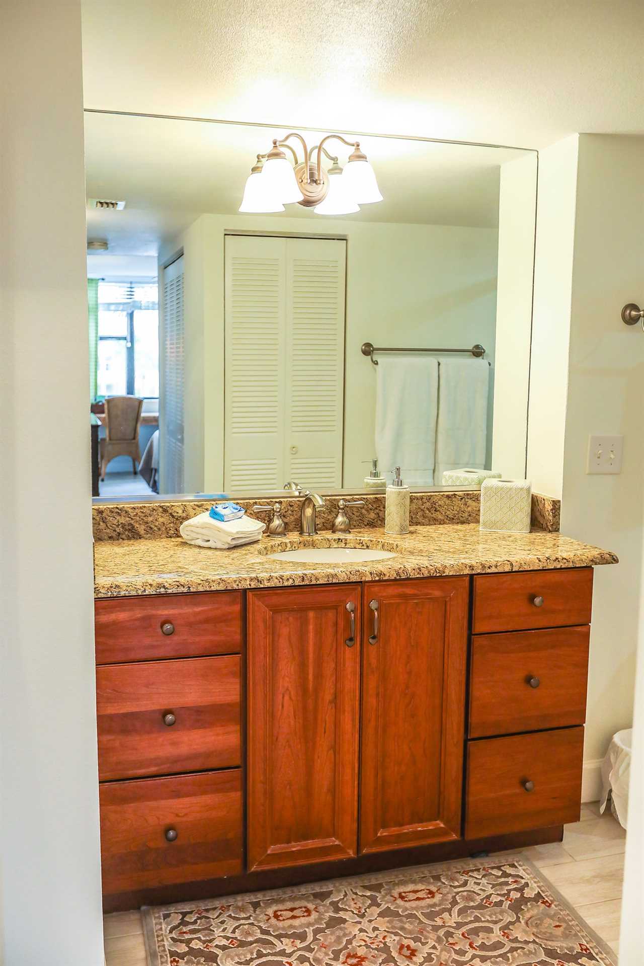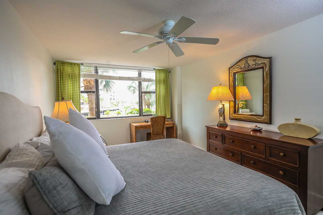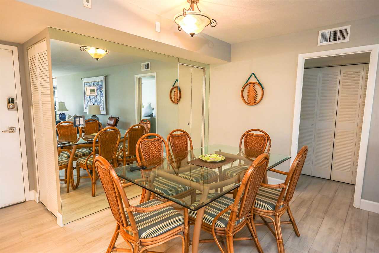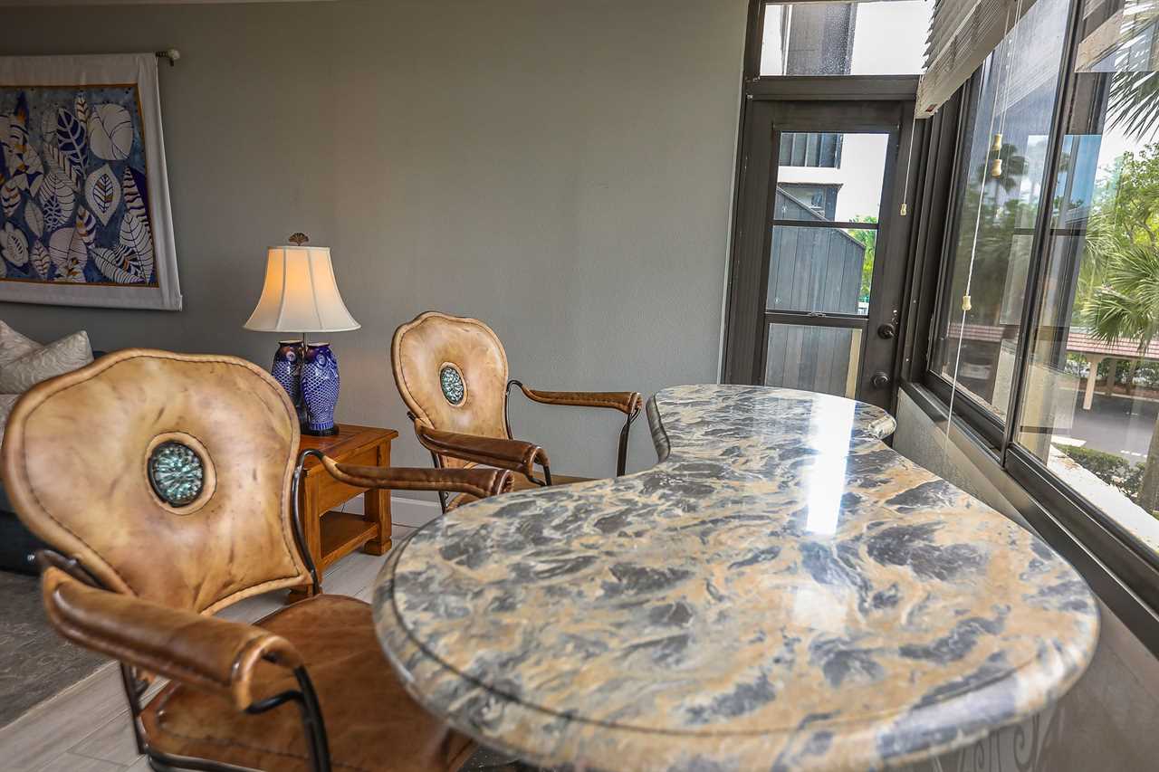 The condo has an enclosed lanai area with a table and chairs for 2. Enjoy the early morning sunrise right from the comfort of your vacation rental!