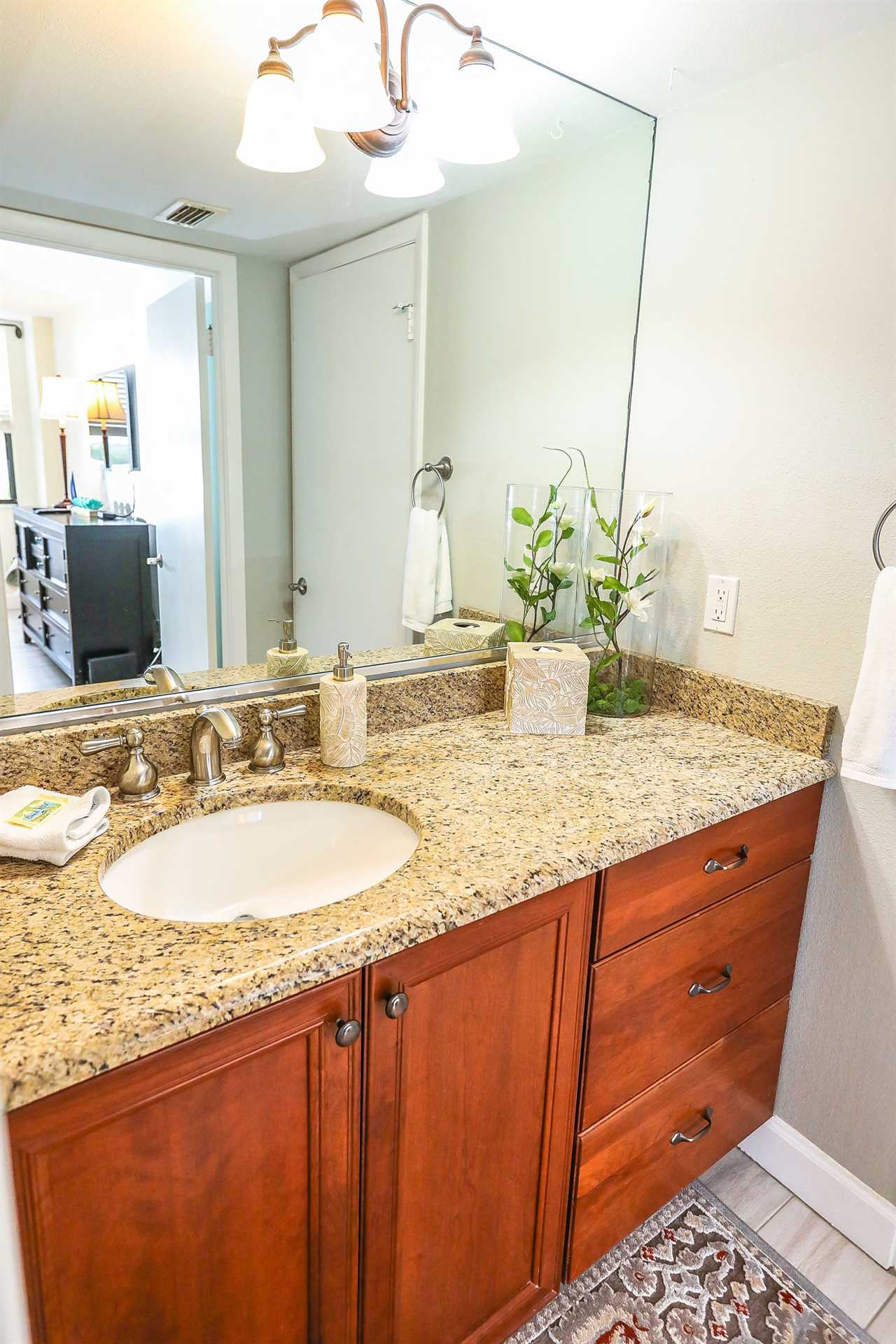 In the guest bedroom there are 2 twin beds, there is closet space available. Attached to the bedroom is the guest bathroom, there is shower/tub combo. Flat screen TV with HD Cable included!