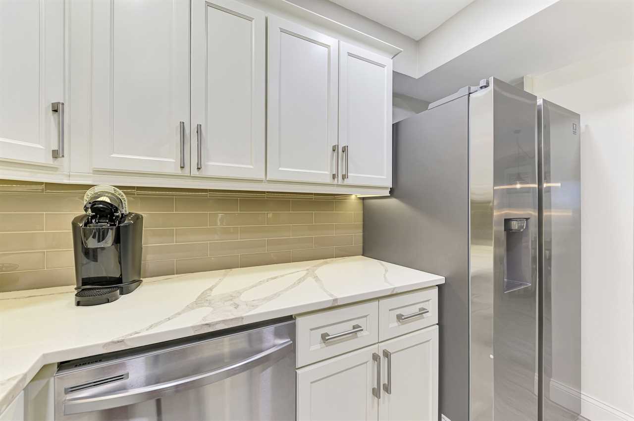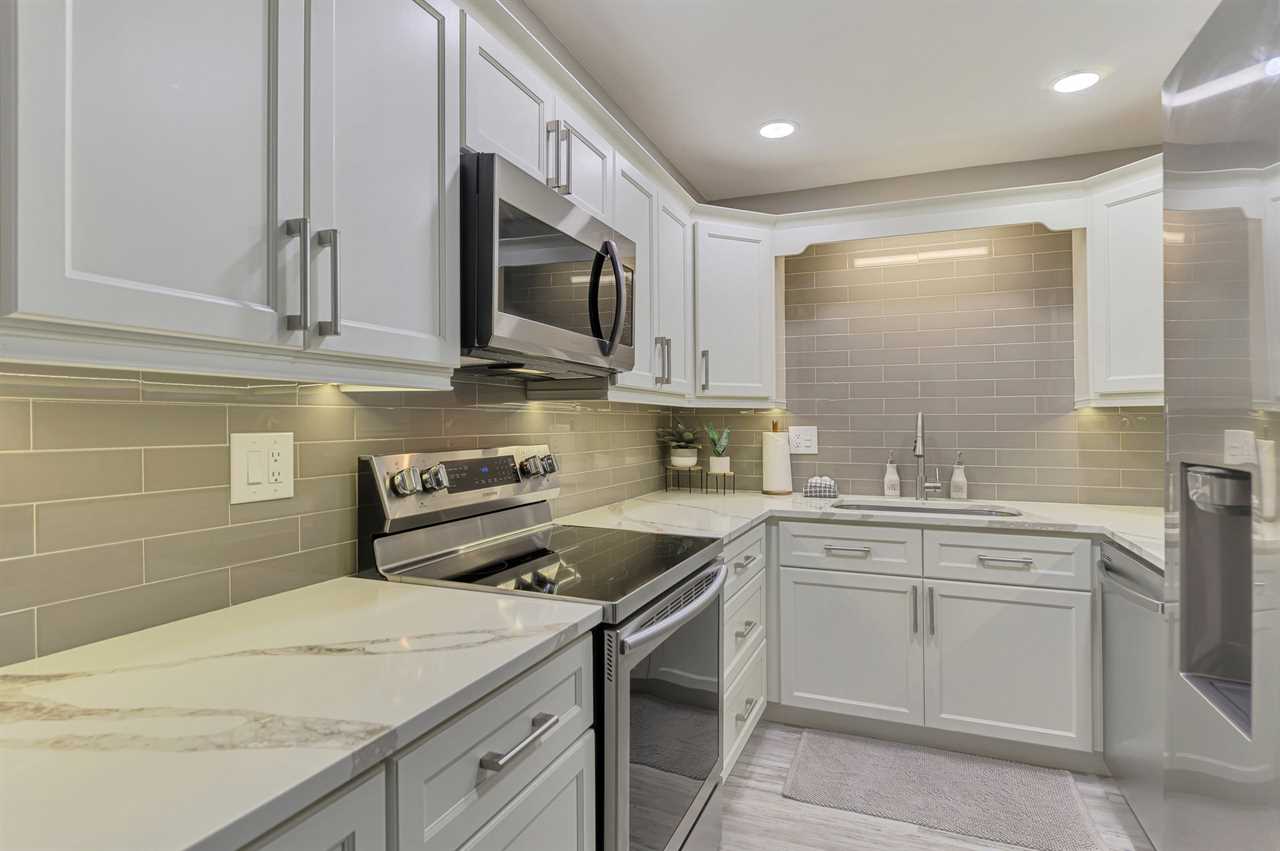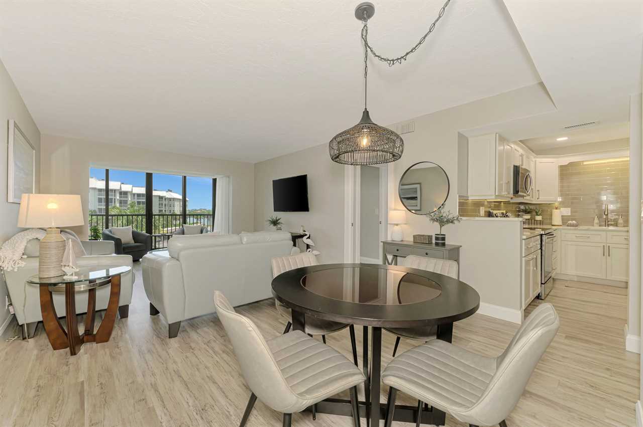 Granite kitchen countertop with all new stainless steel appliances. The kitchen comes fully equipped, including a Keurig for your morning coffee. Condo comes equipped with all dishes, cups, coffee mugs, utensils, pots, pans, and a toaster. Near the kitchen is the dining room, which includes a round dining table for 4.