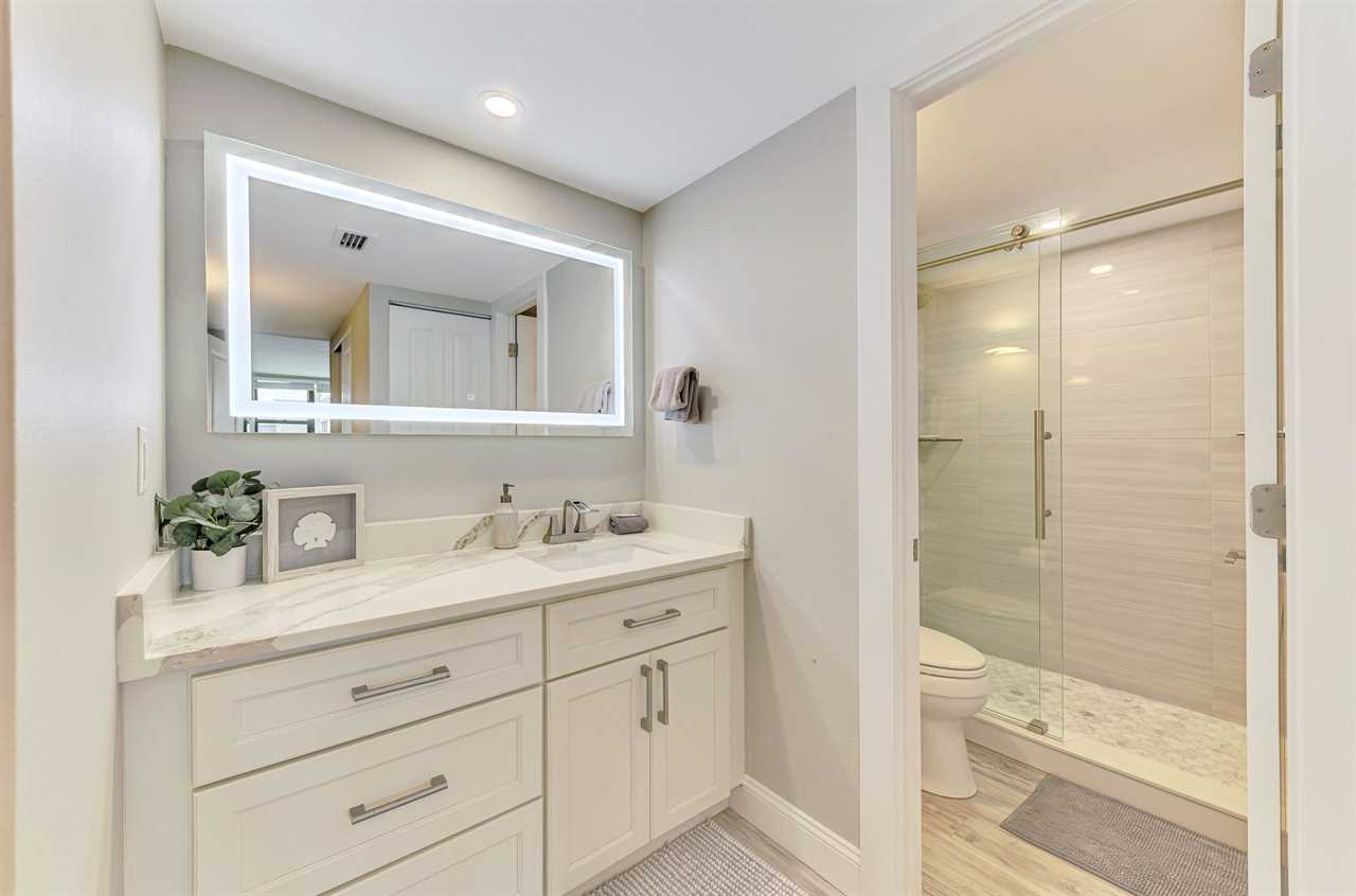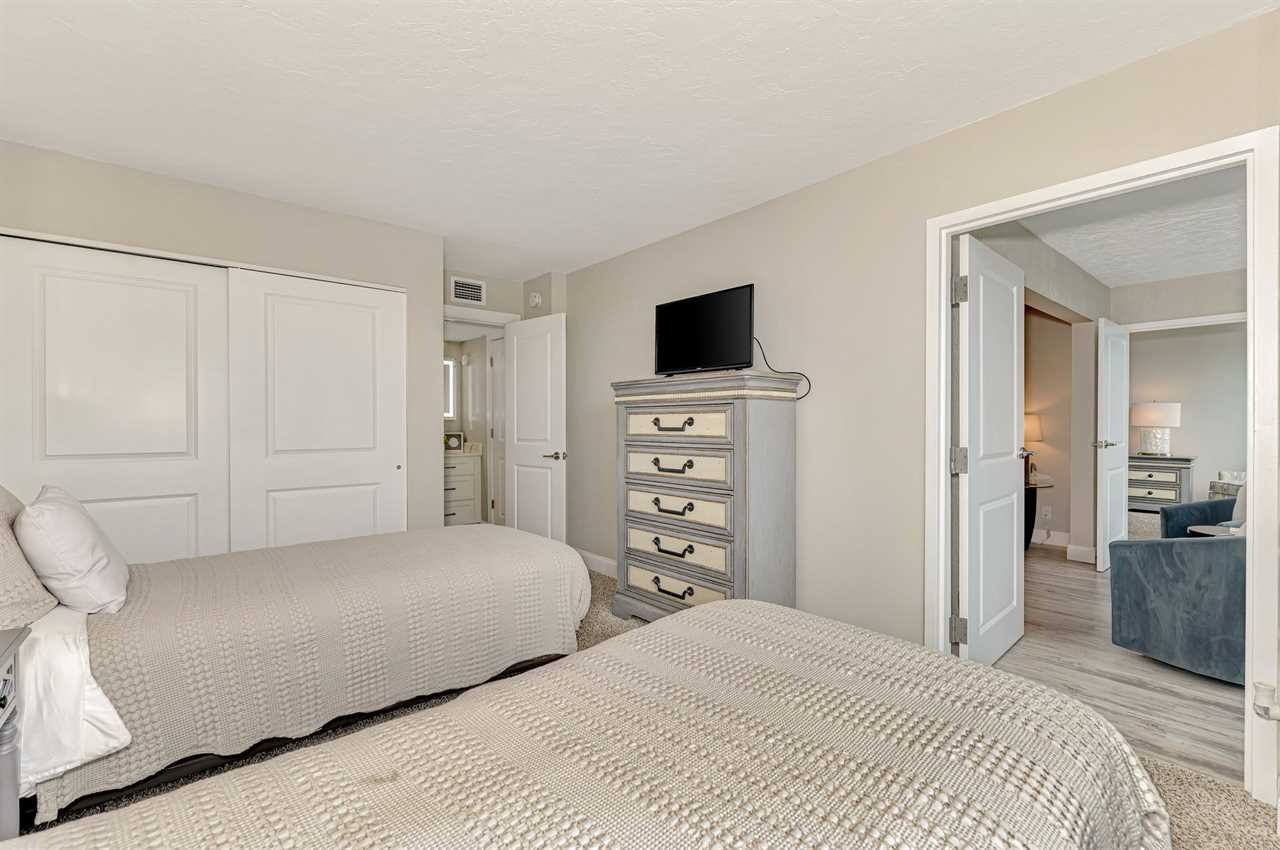 In the master bedroom, you will find a king-size bed with all new furniture. There is a new flat-screen TV with cable. Closet with hangers. Attached is a master bathroom with a walk-in shower with bright lighted mirrors.