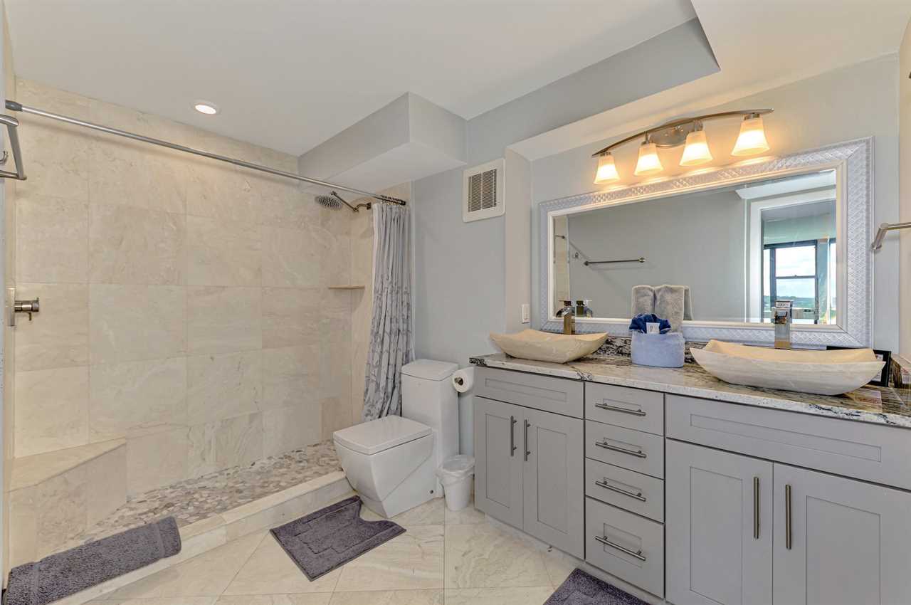 There is a walk-in shower and a bathtub/shower combo, bath towels are also provided.