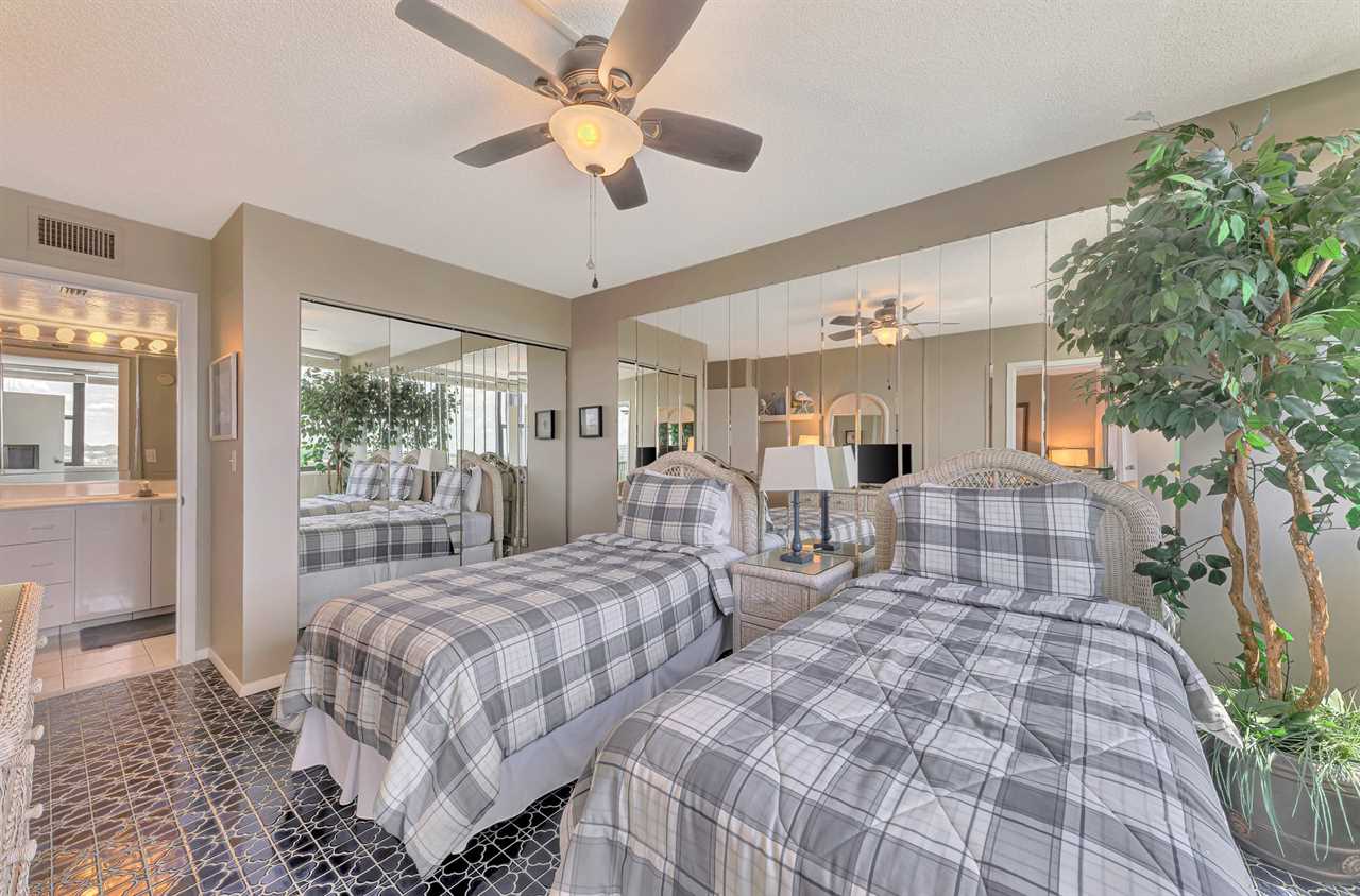 In the guest bedroom are 2 twin beds with an attached bathroom. The bathroom has a bath tub, all linens provided.
