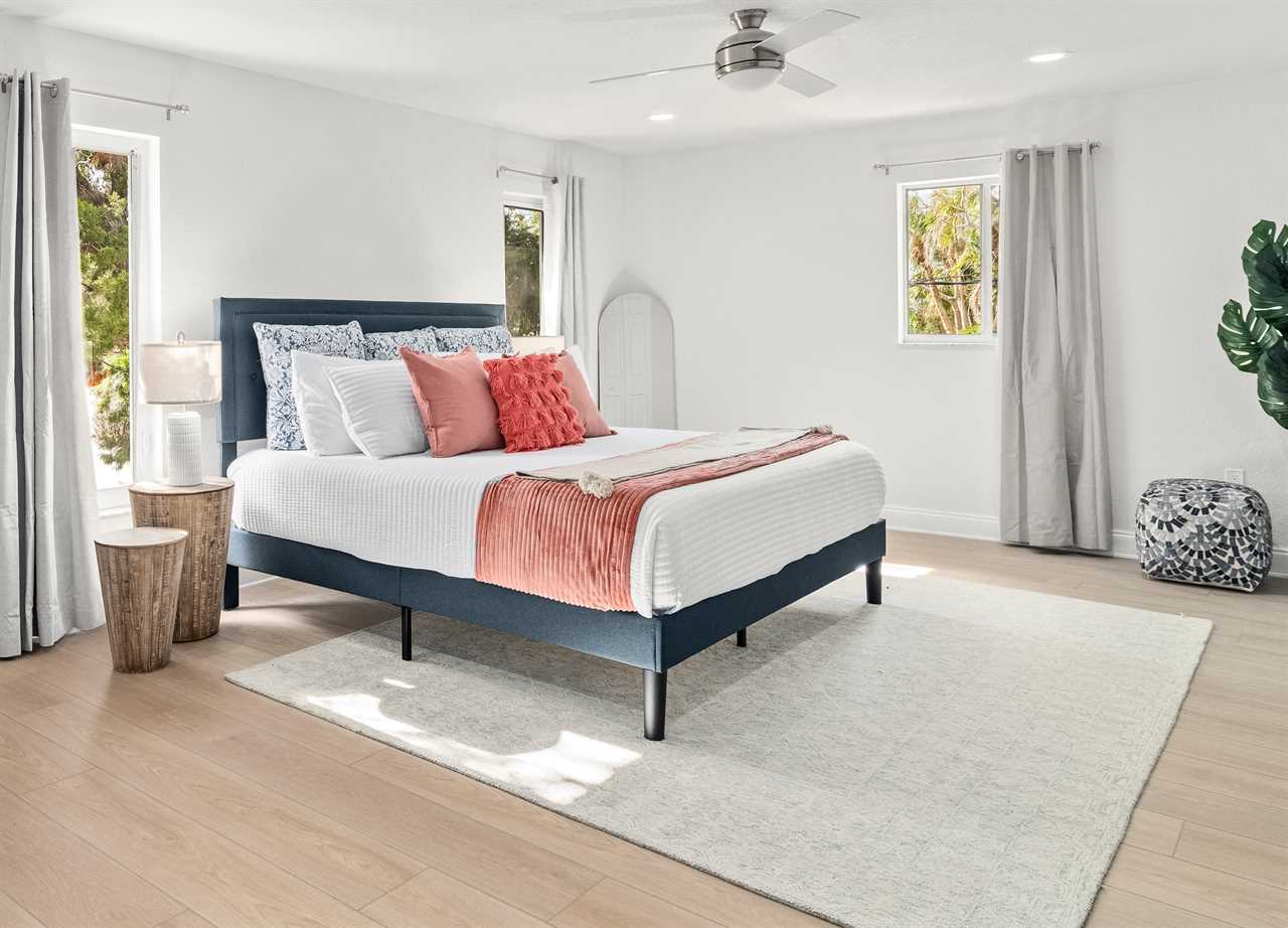 At the heart of the home is a chef-ready kitchen with modern appliances and everything you need to cook, dine, and entertain. Start your day with coffee from either the classic drip machine or Keurig, then enjoy a breezy breakfast outdoors as the palms rustle overhead.
